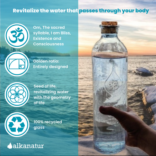 Alkanatur Pitcher with Pack of Filters and OmWater Gratitude Bottle bundle