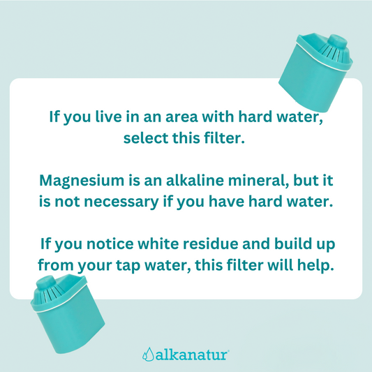 [{"alt":"3 types of filers, Standard (original formula), low magnesium emission, zeolite filter","id":37759341658263,"position":1,"preview_image":{"aspect_ratio":0.8,"height":1350,"width":1080,"src":"\/\/alkanatur.co\/cdn\/shop\/files\/5_b674b890-1cb3-4ff1-9e4c-2a71326bc307.png?v=1771540235"},"aspect_ratio":0.8,"height":1350,"media_type":"image","src":"\/\/alkanatur.co\/cdn\/shop\/files\/5_b674b890-1cb3-4ff1-9e4c-2a71326bc307.png?v=1771540235","width":1080},{"alt":null,"id":37860225515671,"position":2,"preview_image":{"aspect_ratio":0.8,"height":1350,"width":1080,"src":"\/\/alkanatur.co\/cdn\/shop\/files\/Filters_Combo_Pack_2_White_1_Green.png?v=1747168362"},"aspect_ratio":0.8,"height":1350,"media_type":"image","src":"\/\/alkanatur.co\/cdn\/shop\/files\/Filters_Combo_Pack_2_White_1_Green.png?v=1747168362","width":1080},{"alt":"White original filters provides higher antioxidants and more magnesium but in areas with hard water can result in mineral taste","id":37156382507159,"position":3,"preview_image":{"aspect_ratio":1.0,"height":1080,"width":1080,"src":"\/\/alkanatur.co\/cdn\/shop\/files\/Low_Magnesium_Emission_Filters_Product_Photos_ENG_2.png?v=1748455160"},"aspect_ratio":1.0,"height":1080,"media_type":"image","src":"\/\/alkanatur.co\/cdn\/shop\/files\/Low_Magnesium_Emission_Filters_Product_Photos_ENG_2.png?v=1748455160","width":1080},{"alt":"Low magnesium emission filter provides smooth taste for those transitioning from bottled water or living in hard water areas","id":36826343309463,"position":4,"preview_image":{"aspect_ratio":1.0,"height":1080,"width":1080,"src":"\/\/alkanatur.co\/cdn\/shop\/files\/4.png?v=1748455160"},"aspect_ratio":1.0,"height":1080,"media_type":"image","src":"\/\/alkanatur.co\/cdn\/shop\/files\/4.png?v=1748455160","width":1080},{"alt":"The Zeolite helps remove more heavy metals such as Aluminum, Ammonia, Nitrites, and Radioactive elements.","id":37860282171543,"position":5,"preview_image":{"aspect_ratio":1.0,"height":1080,"width":1080,"src":"\/\/alkanatur.co\/cdn\/shop\/files\/Low_Magnesium_Emission_Filters_Product_Photos_ENG_5.png?v=1771437542"},"aspect_ratio":1.0,"height":1080,"media_type":"image","src":"\/\/alkanatur.co\/cdn\/shop\/files\/Low_Magnesium_Emission_Filters_Product_Photos_ENG_5.png?v=1771437542","width":1080},{"alt":"One alkanatur filter lasts 400 liters and replaces 400 water bottles. Save your pocket and the environment","id":36826340196503,"position":6,"preview_image":{"aspect_ratio":1.0,"height":1080,"width":1080,"src":"\/\/alkanatur.co\/cdn\/shop\/files\/2_b4deb225-2ca1-4c69-bca2-142ea5636b7d.png?v=1748455222"},"aspect_ratio":1.0,"height":1080,"media_type":"image","src":"\/\/alkanatur.co\/cdn\/shop\/files\/2_b4deb225-2ca1-4c69-bca2-142ea5636b7d.png?v=1748455222","width":1080},{"alt":null,"id":35701692727447,"position":7,"preview_image":{"aspect_ratio":1.0,"height":1500,"width":1500,"src":"\/\/alkanatur.co\/cdn\/shop\/files\/English_6.png?v=1748455160"},"aspect_ratio":1.0,"height":1500,"media_type":"image","src":"\/\/alkanatur.co\/cdn\/shop\/files\/English_6.png?v=1748455160","width":1500},{"alt":null,"id":30606477590679,"position":8,"preview_image":{"aspect_ratio":1.333,"height":360,"width":480,"src":"\/\/alkanatur.co\/cdn\/shop\/products\/hqdefault.jpg?v=1670345098"},"aspect_ratio":1.77,"external_id":"LIgfkpaNHF4","host":"youtube","media_type":"external_video"}]