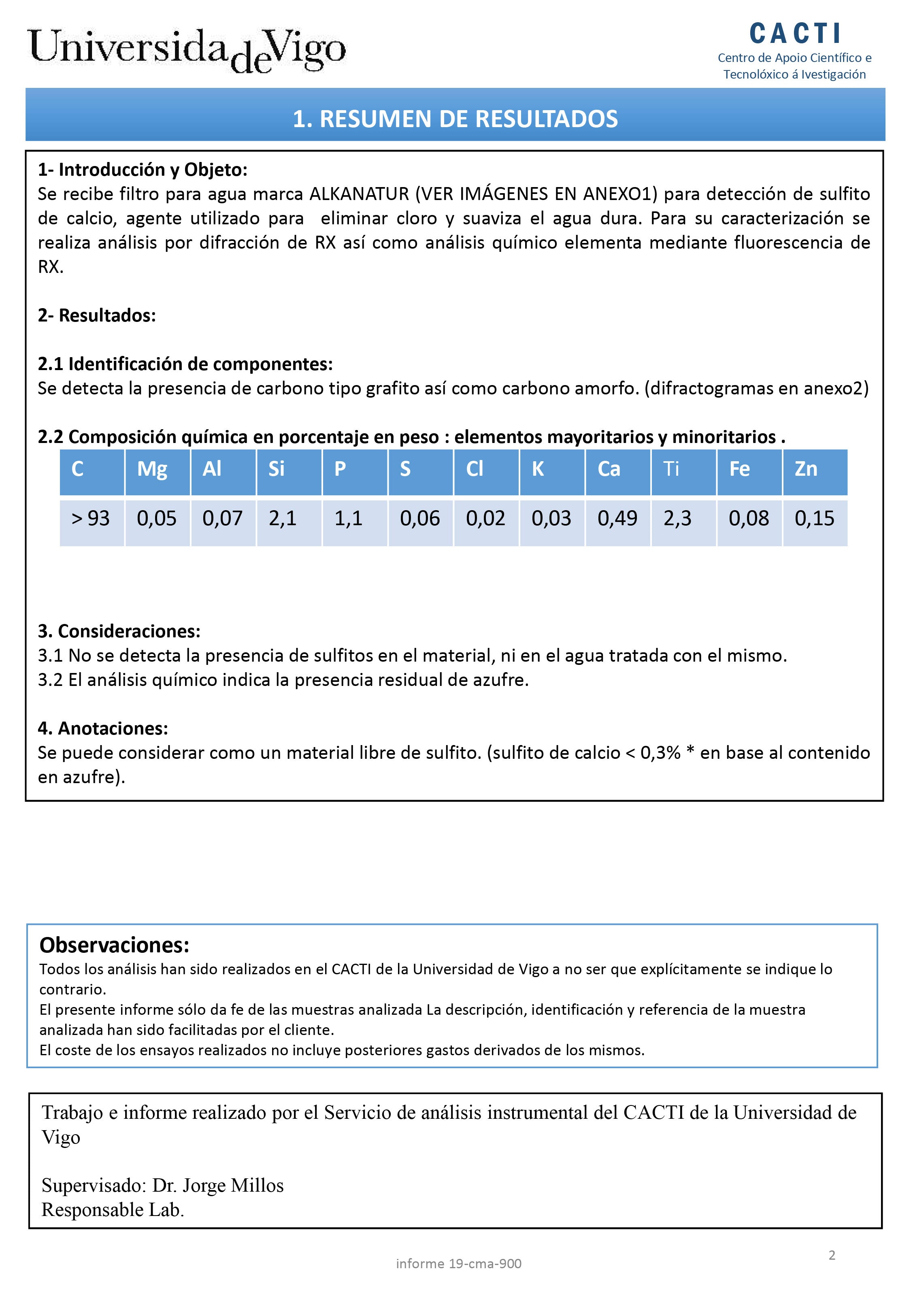 L'analyse fournie par le CACTI (Service de Sécurité Alimentaire de l'Université de Vigo) certifie que les filtres de douche Alkanatur sont exempts de sulfite de calcium E226.